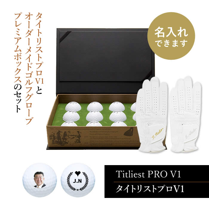 【プレミアムセット】タイトリストプロV1 12球 - ゴルフボール 名入れ &オーダーメイドグローブ(Indoプレミアム)お仕立て券のセット【プレミアムボックス付き】