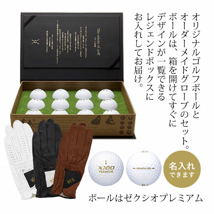 【プレミアムセット】名入れゼクシオプレミアムボール(ロイヤルゴールド)12球&オーダーメイドグローブ(ダイアモンド)お仕立て券のセット【プレミアムボックス付き】