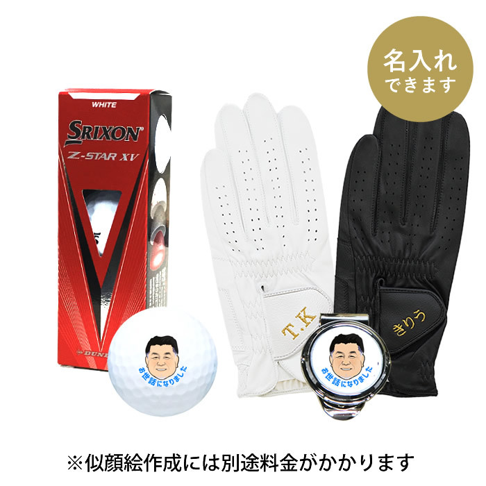 オーダーメイドゴルフグローブお仕立券とオリジナル印刷ボールとクリップ式マーカーのちょっと贅沢なギフトセット。ボールとマーカーにはオリジナルデザイン(1デザイン)で印刷ができます。似顔絵作成には追加料金がかかります。