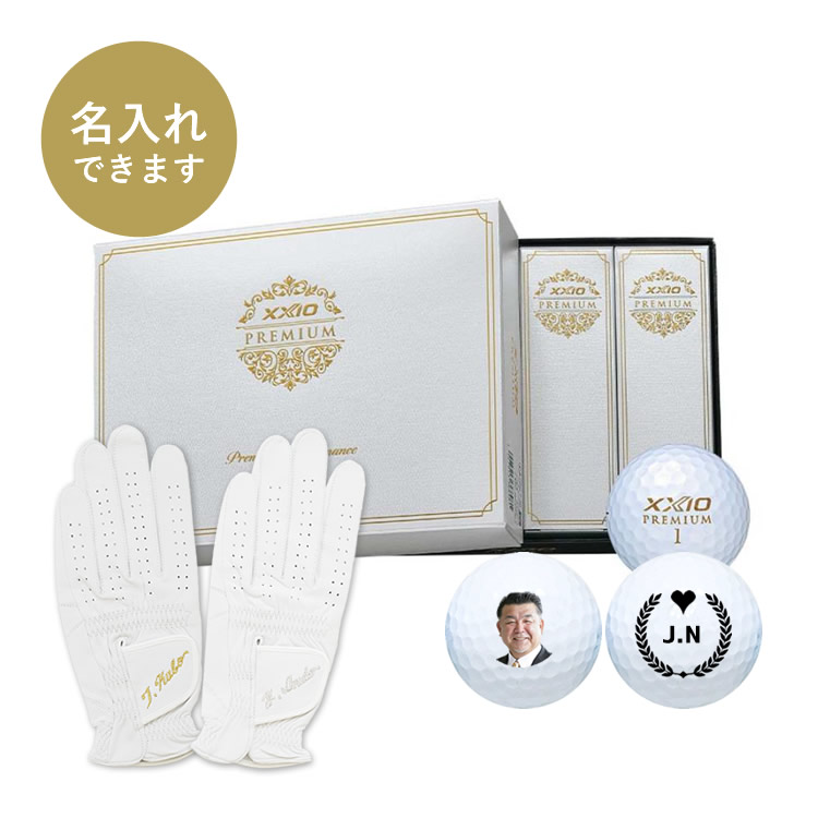 【プレミアムセット】名入れゼクシオプレミアム(ロイヤルゴールド)12球とオーダーメイドグローブ(Indoプレミアム)お仕立て券のセット