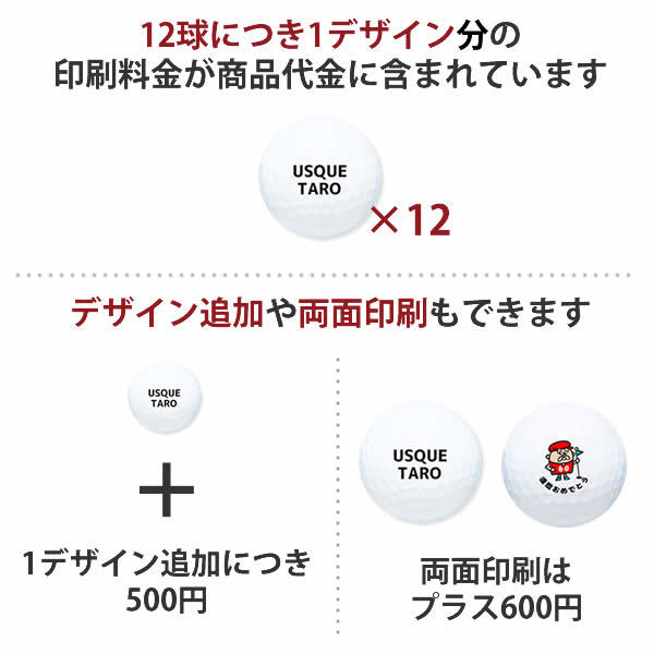 1球単位でデザインを変える場合、1デザインにつき500円追加料金がかかります。(上記例の場合、2デザイン追加なので1000円の追加料金)