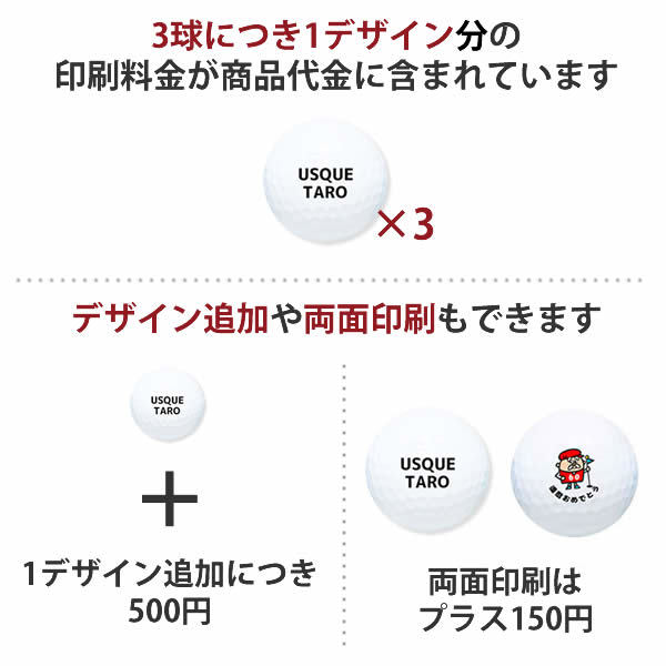 印刷デザインが引き立つ、当店オリジナル無地ゴルフボール3球入りです。